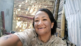 Anal masturbation in front of a webcam. A mature housewife in a private bang-out chat shows her hairy vagina and an arsehole, shakes her plump booty. Home play and dirty foot fetish.