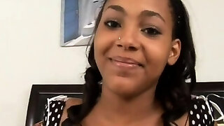 Ebony girlfriend Haylee Wynters gives a blow-job and gets her pussy poked