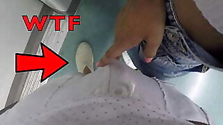 Vendedora gatinha olhando meu volume gostou de ver bulge