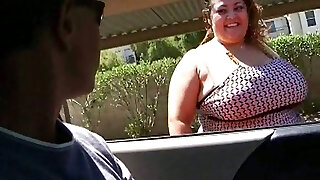 Smiley SSBBW hoe flashes her giant congenital boobs in kinky porno clip