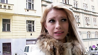 Platinum-blonde tight pussy babe solo toy fun in glamour masturbation