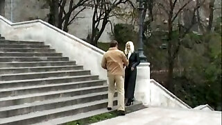 Slender hoe in high high-heeled slippers just can't get enough of her lover's black cock