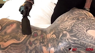 Horny tattoo master entices a cute chinese girl while making her a tattoo and fucks her as a bonus