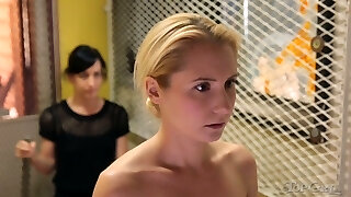 lesbian ties the girl ingenue in hogtied!