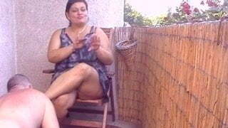 Painted toenails and gentle soles on a sole fetish babe outdoors