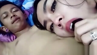 2 tanned Thai ladyboys Gift n Nice in crazy anal pleasure