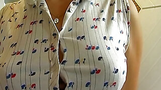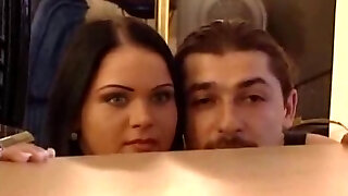 Majestic and lascivious busty babe kneaded and fed with dicks