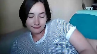 可爱的怀孕小妞炫耀她的曲线上的摄像头显示